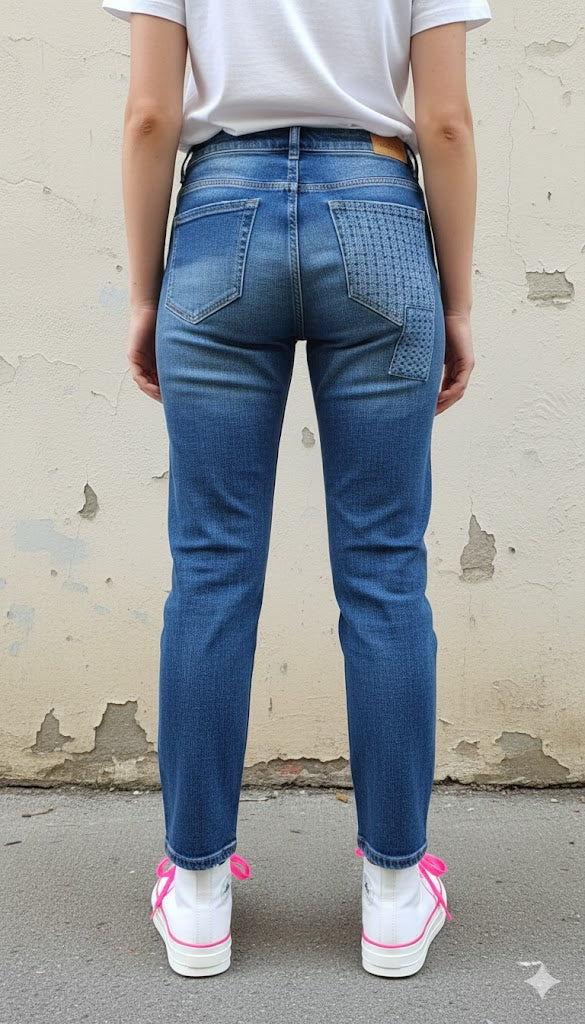 👖 S.WOMAN JEANS BLAU MIT PATCHES & GLITZER-DETAILS