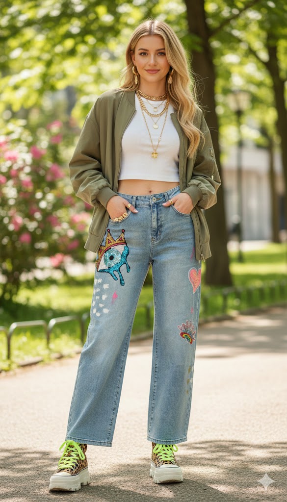 👖 HELLE JEANS MIT PINSELSTRICHEN & PAILETTEN-APPLIKATIONEN